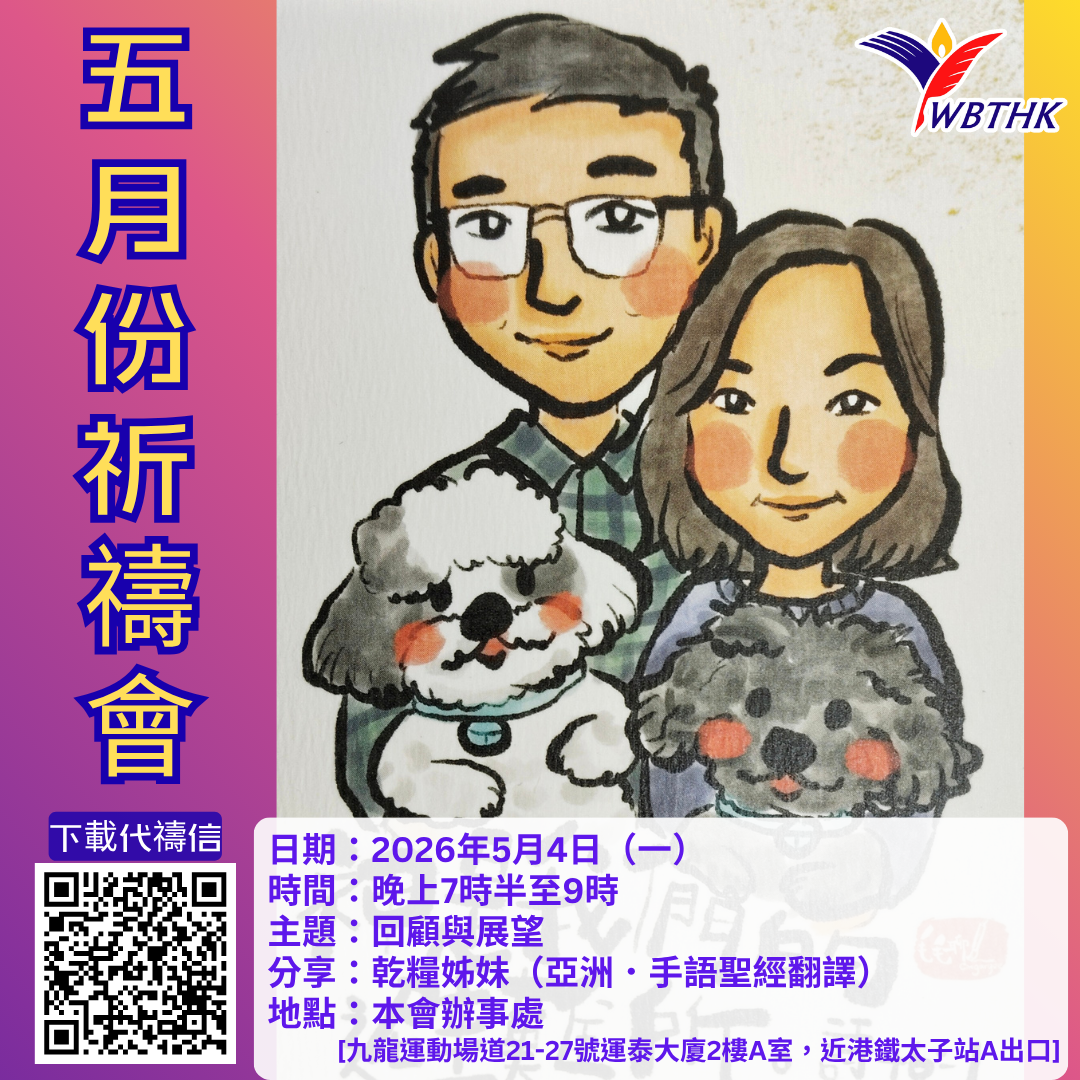 歡迎參加5月份祈禱會,透過乾糧姊妹的分享,更深了解亞洲的手語聖經翻譯工作!...