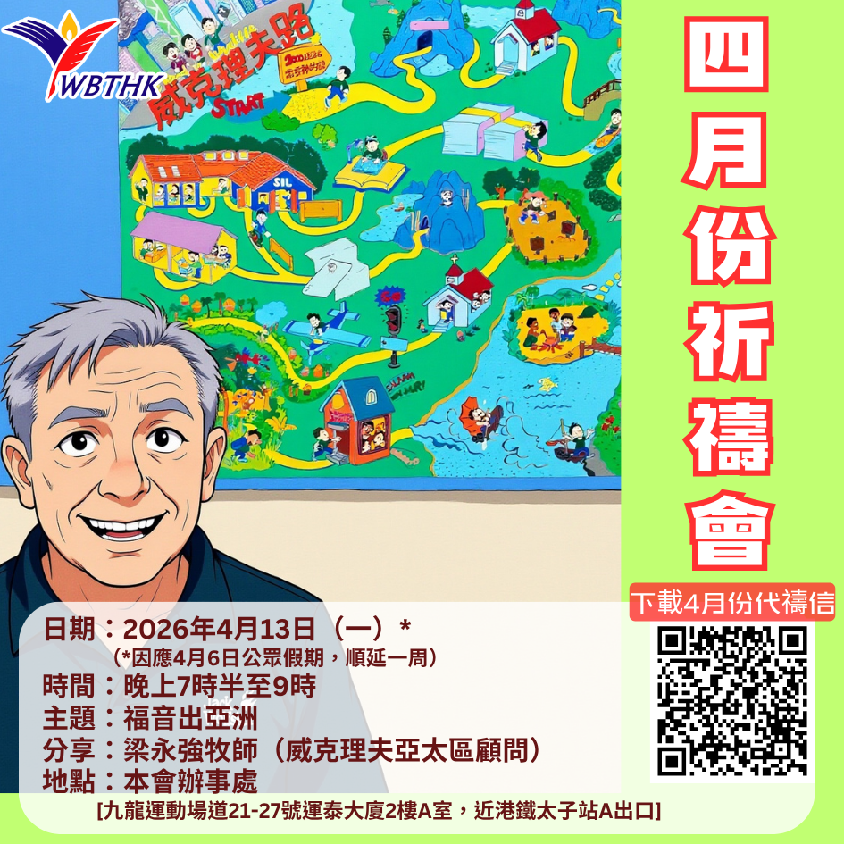 梁永強牧師於1992年擔任本會第二任總幹事,2002年調職至國際威克理夫亞太區, 目前他不時在教會、神學院、差傳機構等擔任專題講員。 歡迎弟兄姊妹參與4月13日(星期一晚)月禱會! 按此下載:四月份代禱信